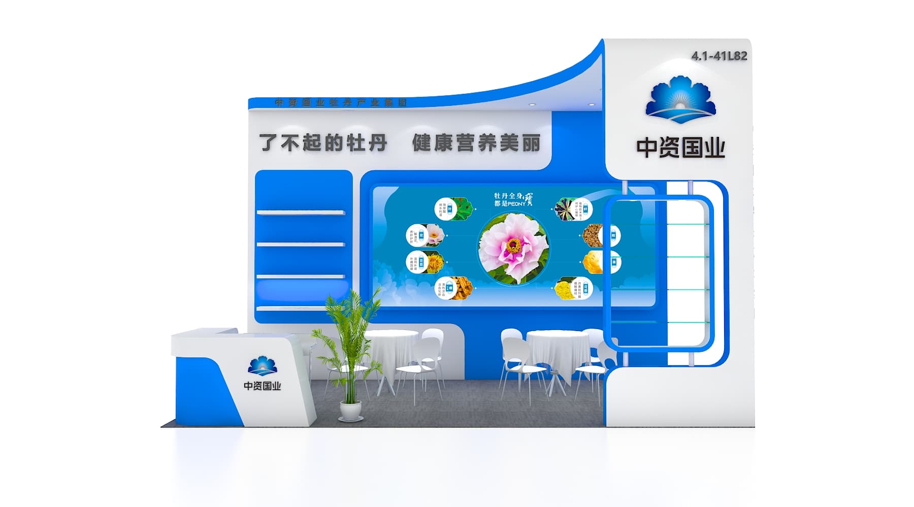 我們的展位設(shè)計(jì)巧妙融入了牡丹元素,營(yíng)造出自然、科技與健康交融的沉浸式體驗(yàn)空間