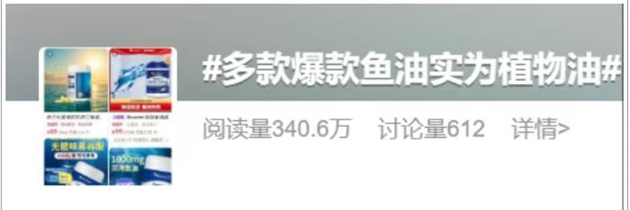 2025年6月,央視新聞曾曝光某“高純度魚油”實際用的是植物油,近期仍在售賣。